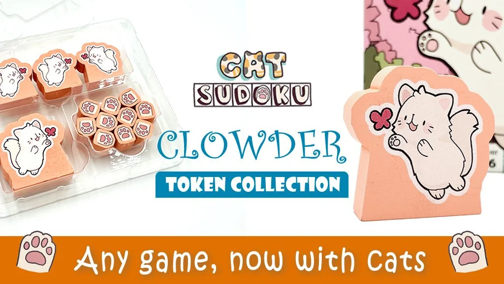 The Clowder Token Collection is a set of adorable, cat-shaped wooden tokens designed to upgrade your tabletop games, no matter what you’re playing. Each set comes in a unique color, letting you replace generic cubes, markers, or tokens with a tiny clowder of cats. Use them as player markers, score trackers, first-player tokens, reminders or simply because cats belong at the table.