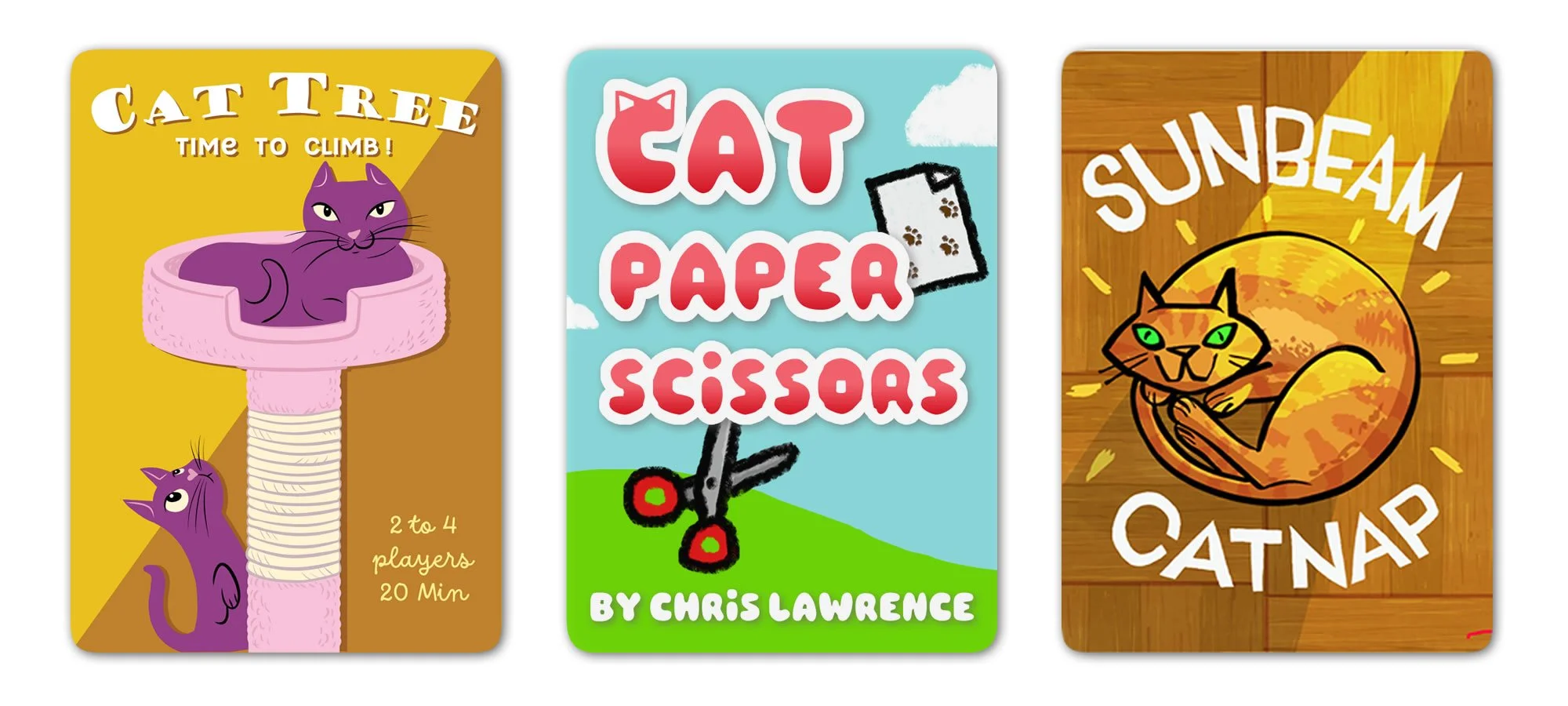 Sunbeam Catnap is a gently competitive spatial puzzle game about forming cozy groups of same-colored cats under a constantly shifting sunbeam. Over a 4-round afternoon, place and overlap cat cards — with one, two or three cats — to claim the warmest spots, avoid shadows and collect cat toys. Play new cats from your hand or reposition cards already on the table to keep your cats basking in the sun. When the afternoon light starts to fade, the player with the coziest cats in the warmest parts of the sunbeam wins!