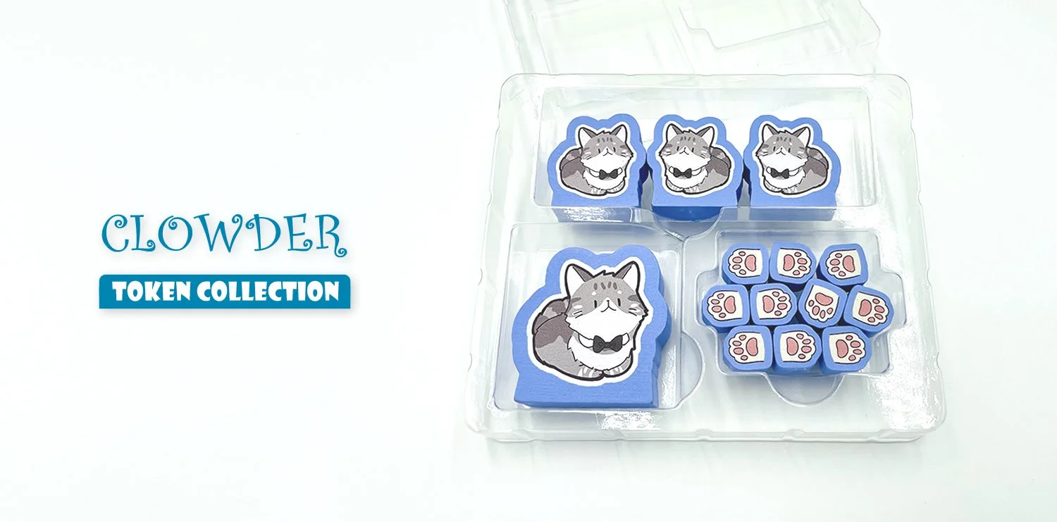 Alongside the token collection, we’re also working on three Clowder Companion Games — small, fun, thematic cat games designed by local designers, helping them share their games and names with the world.