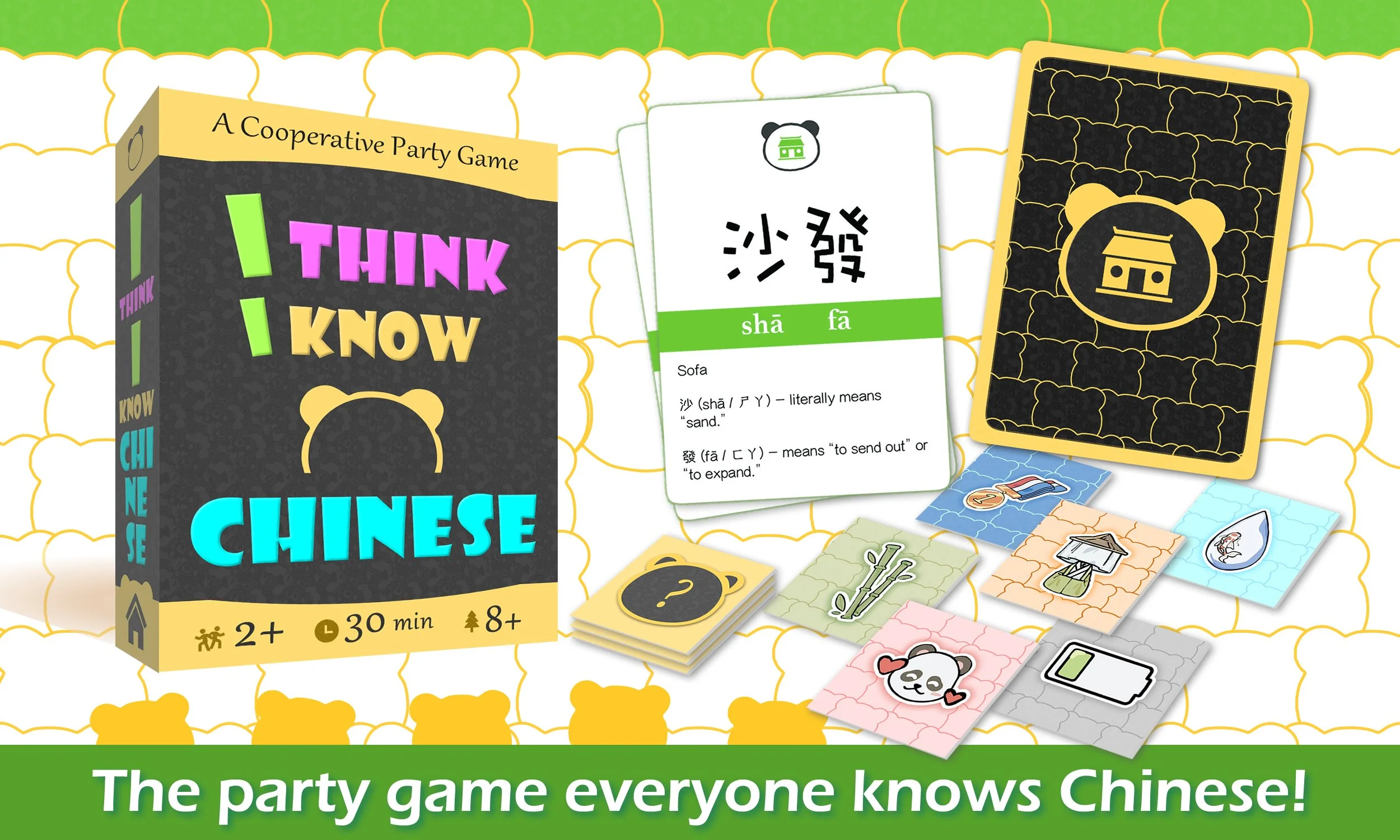 I Think I Know Chinese is a light, cooperative party game for 2+ players where everyone works together to guess Chinese words using Element Tiles.