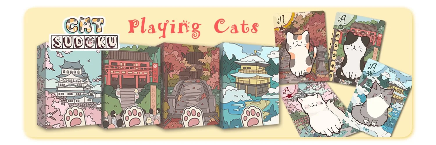 Playing Cats is a deck of 54 purr-fectly adorable playing cards featuring 18 lovable cats from Cat Sudoku, beautifully illustrated by the pawsome artist Kaiami. Each cat appears across the deck, bringing charm, personality, and plenty of whiskers to every hand you play.